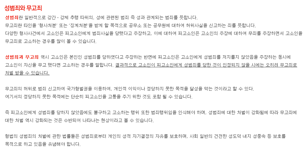 - 합의하에 성관계를 하였으나 강간을 당했다고 허위로 신고한 경우